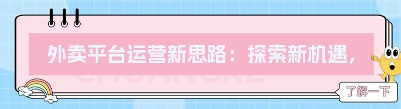 在当今竞争激烈的外卖市场中,如何脱颖而出并取得成功成为了众多外卖平台运营者面临的挑战。传统的运营思路可能已经无法满足市场的需求,因此,探索新的运营思路要点至关重要。本文将为您介绍一些外卖平台运营的新思路,帮助您开启新的征程。