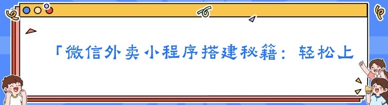 「微信外卖小程序搭建秘籍:轻松上手,一看就会!」
