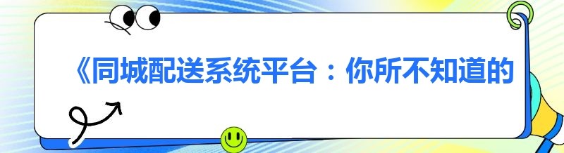 《同城配送系统平台:你所不知道的定制化魅力》