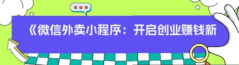 《微信外卖小程序:开启创业赚钱新机遇》
