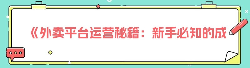 《外卖平台运营秘籍:新手必知的成功之道》