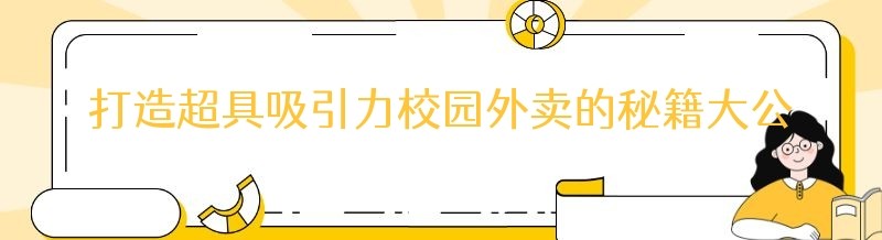 打造超具吸引力校园外卖的秘籍大公开!