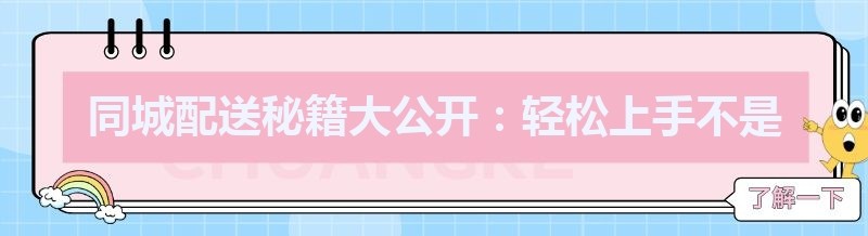 编辑 同城配送秘籍大公开:轻松上手不是梦!