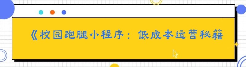 《校园跑腿小程序:低成本运营秘籍大揭秘》
