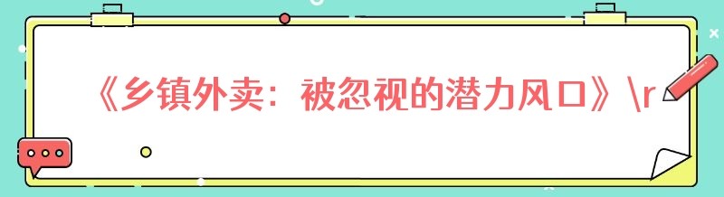 《乡镇外卖:被忽视的潜力风口》