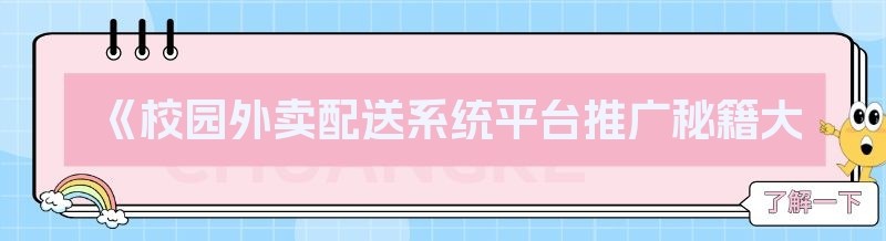 《校园外卖配送系统平台推广秘籍大公开》