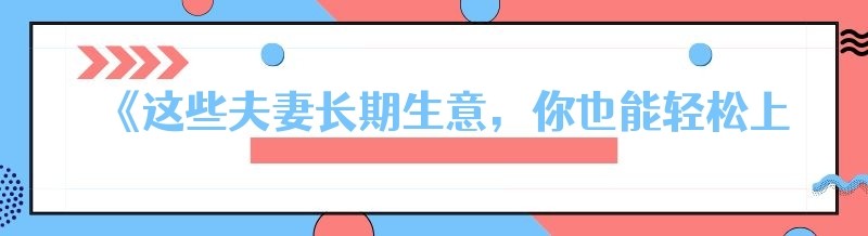 《这些夫妻长期生意,你也能轻松上手!》